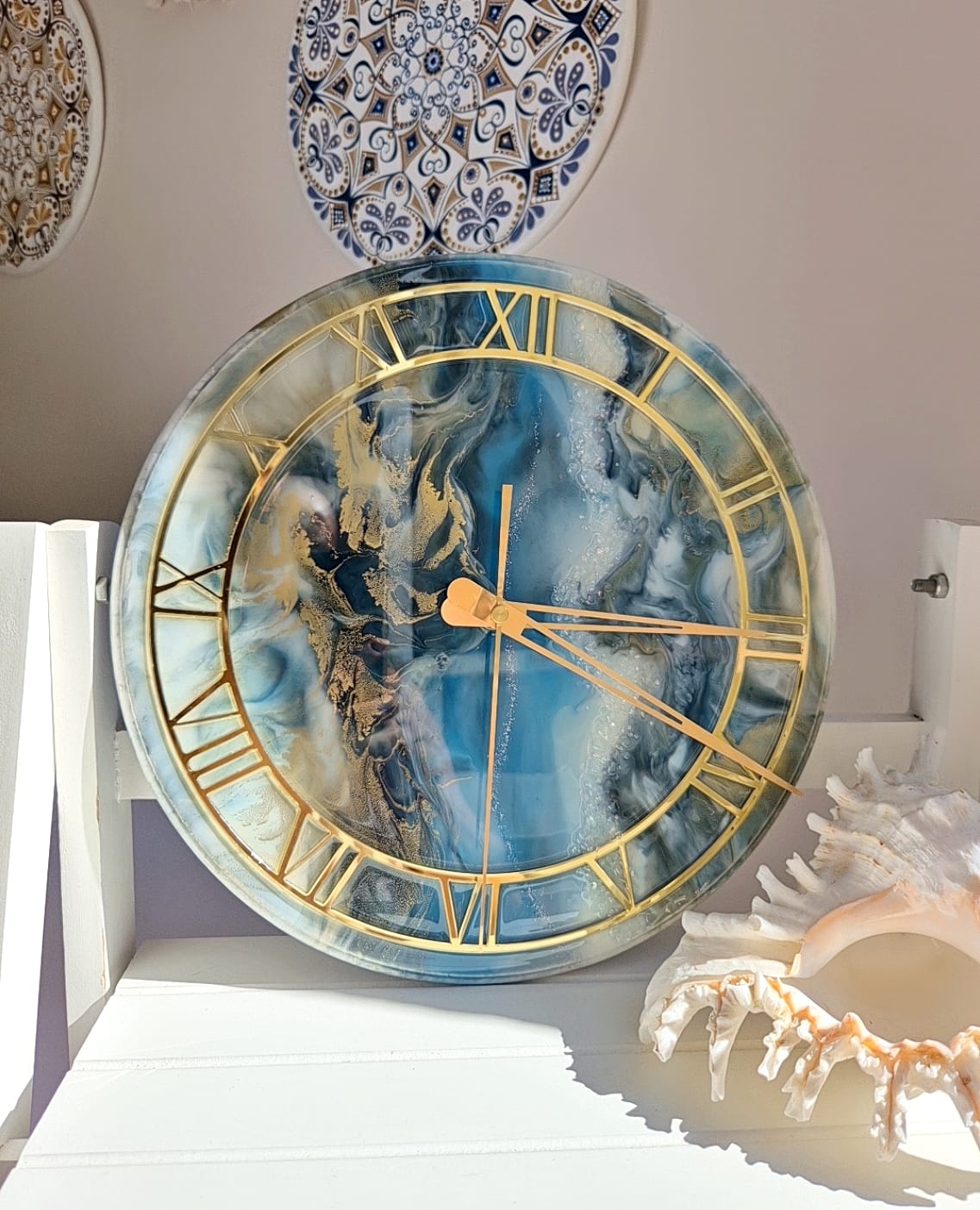 I ordered a custom resin wall clock. Yana first prepared a sketch, and only after I confirmed it, she started working on the piece. The result is amazing – the clock looks perfect in my living room and really stands out. Great communication and beautiful craftsmanship!
